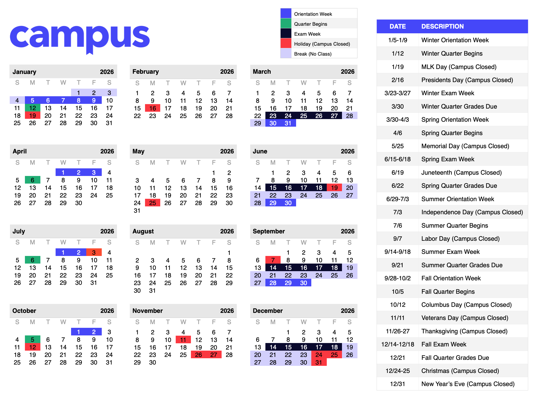 Campus 2026 Academic Calendar